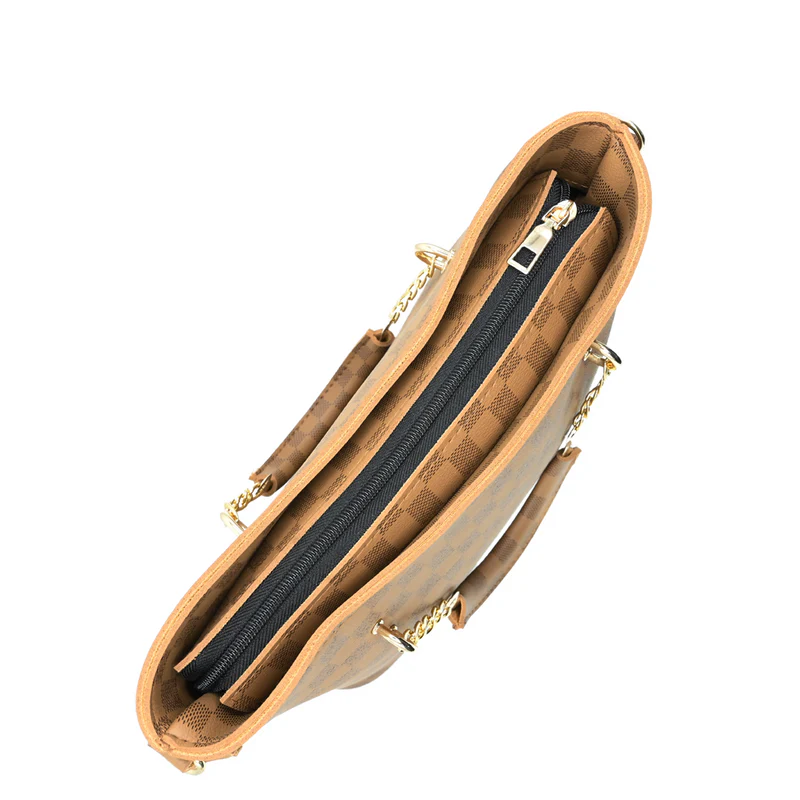 The Luxeira Brown Checkered Tote Handbag for Women is a suitable option for those who prefer a functional tote bag with a simple pattern and versatile color, without exaggerated or misleading claims.